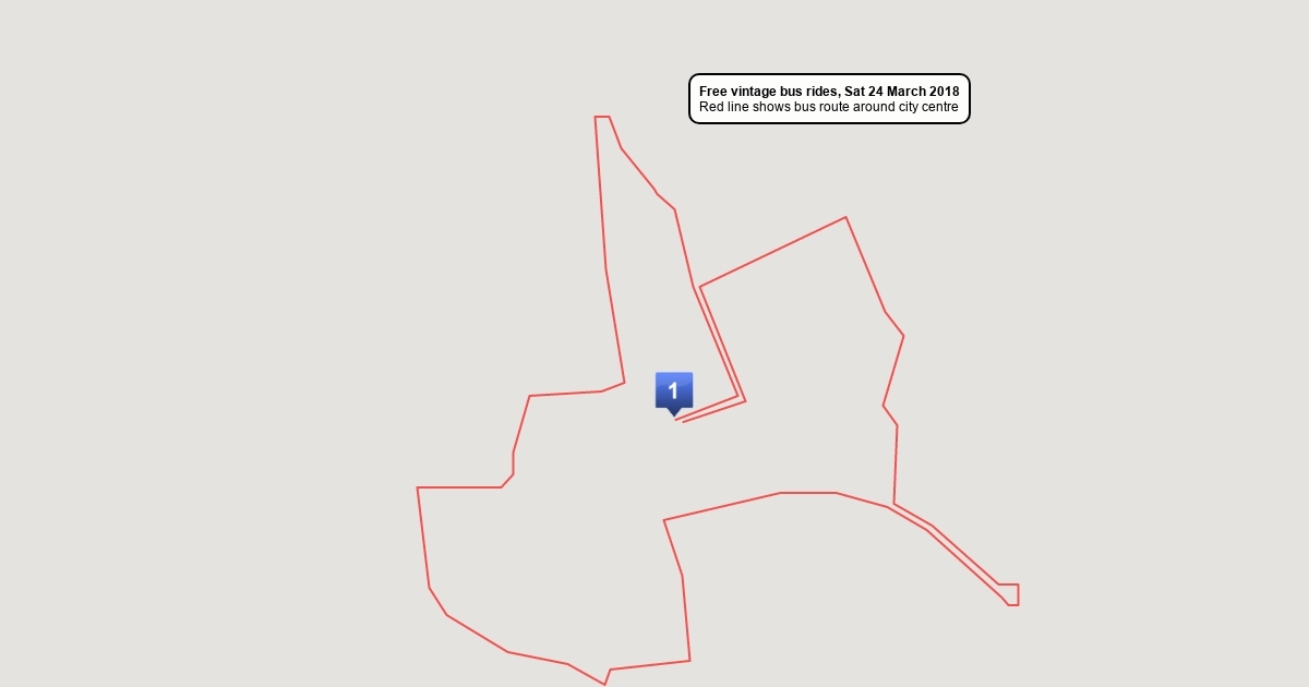 Map shows route of vintage buses around City centre for Saturday 24 March 2018