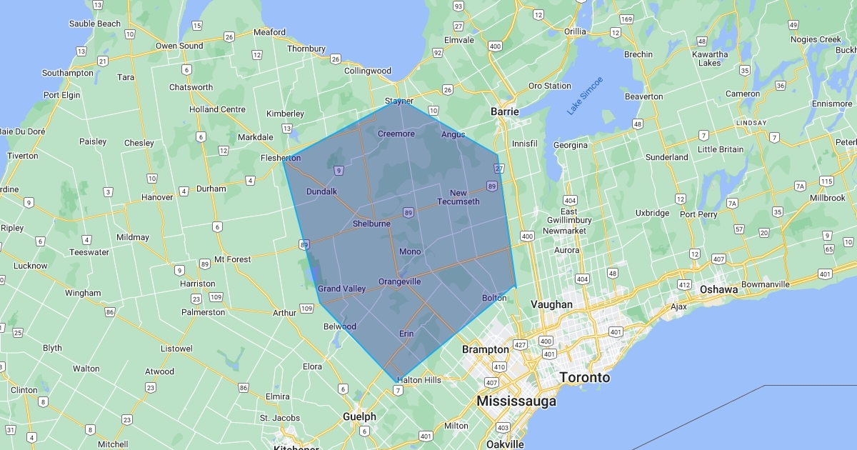 No Travel fees on services within the shaded area!