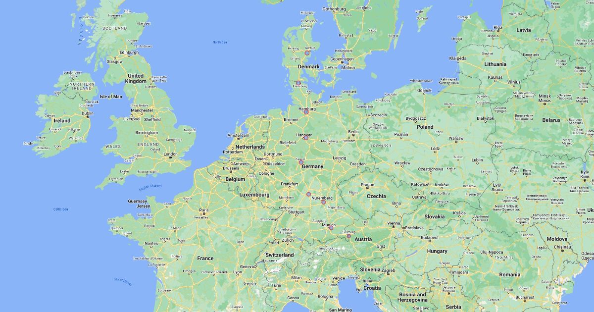 Med cirkler så børn kan tegne den kørte rute gennem Tyskland