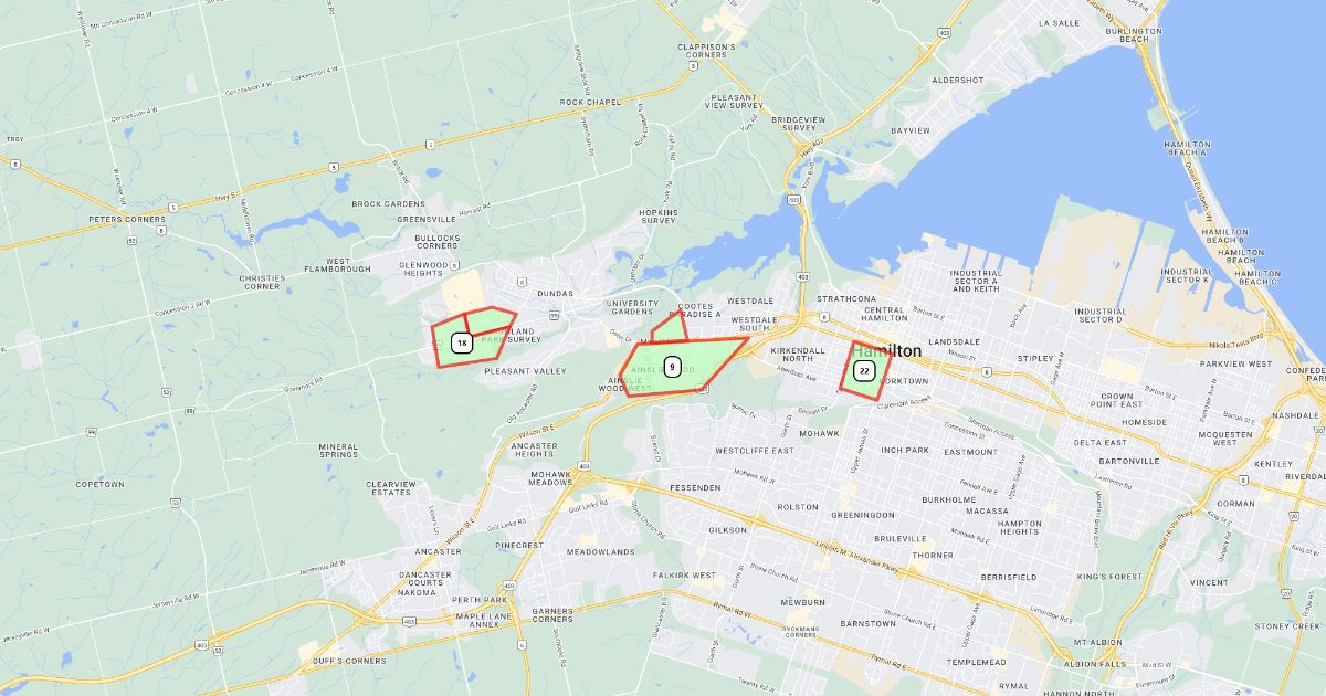 Map of areas hit