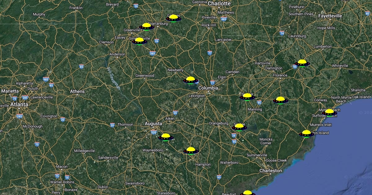 Map of 2018 UFO sightings in SC.