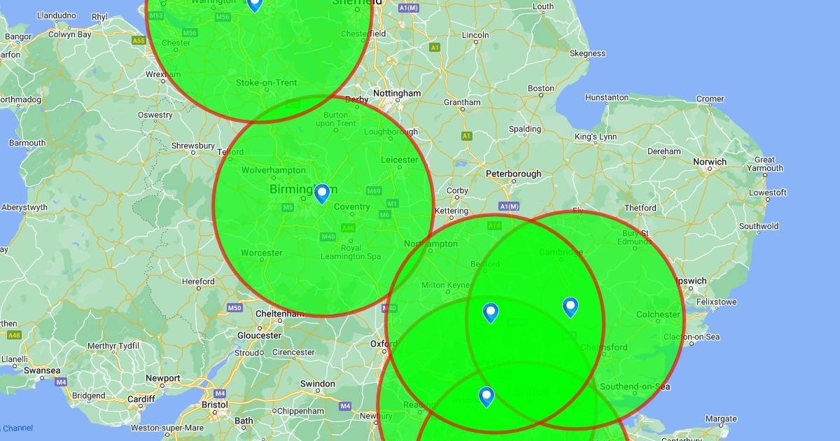 60km radius round UK airports