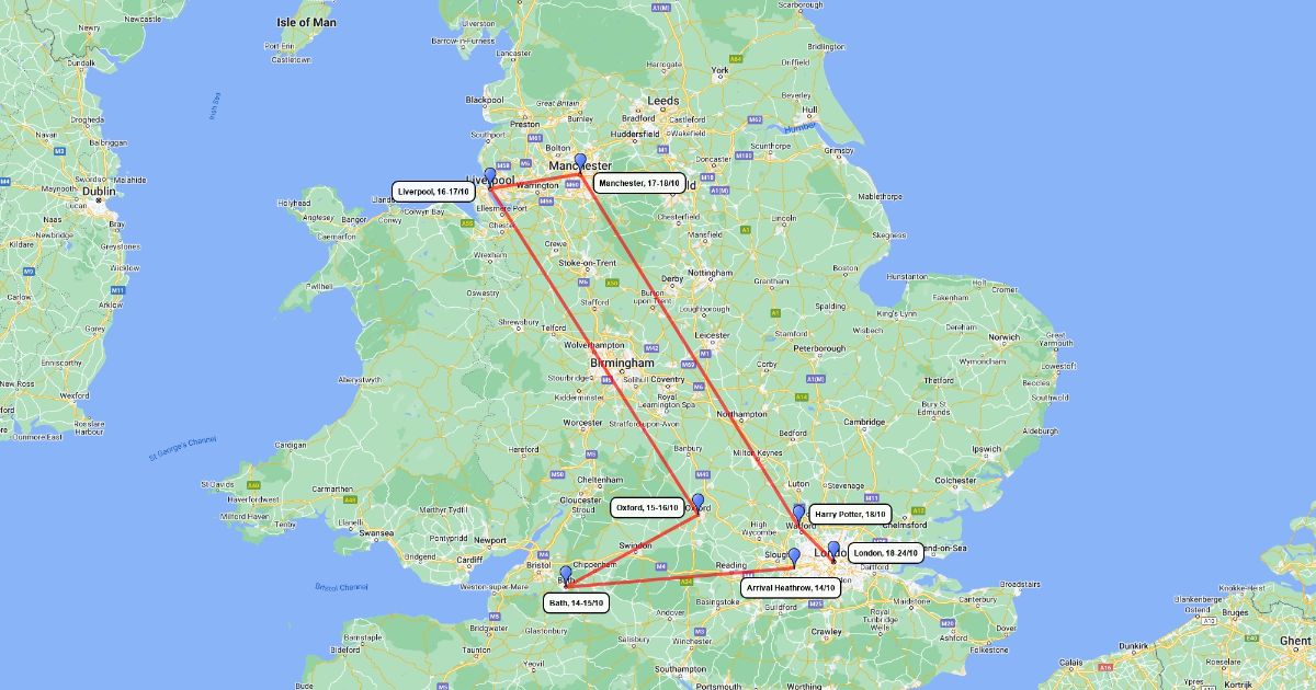 Itinerary of UK trip.