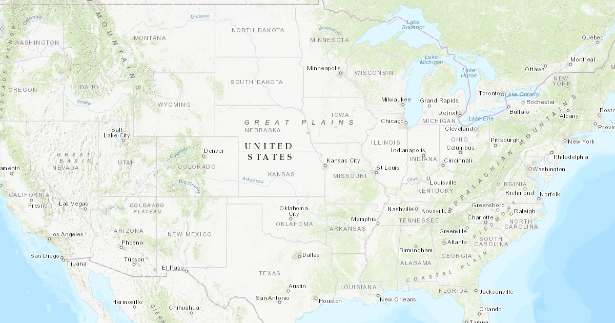 USA Map with Physical Deets