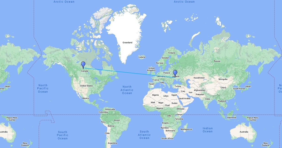 Ukraine TO Canada Map