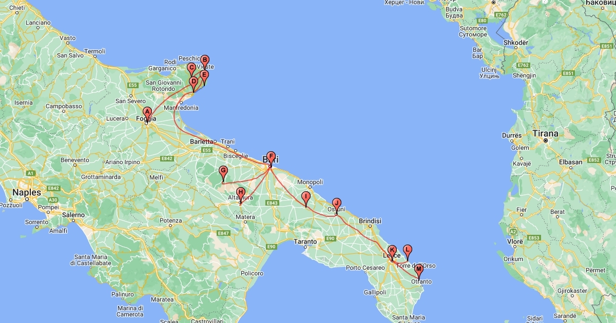 Un layout del mio viaggio di due settimane in Puglia