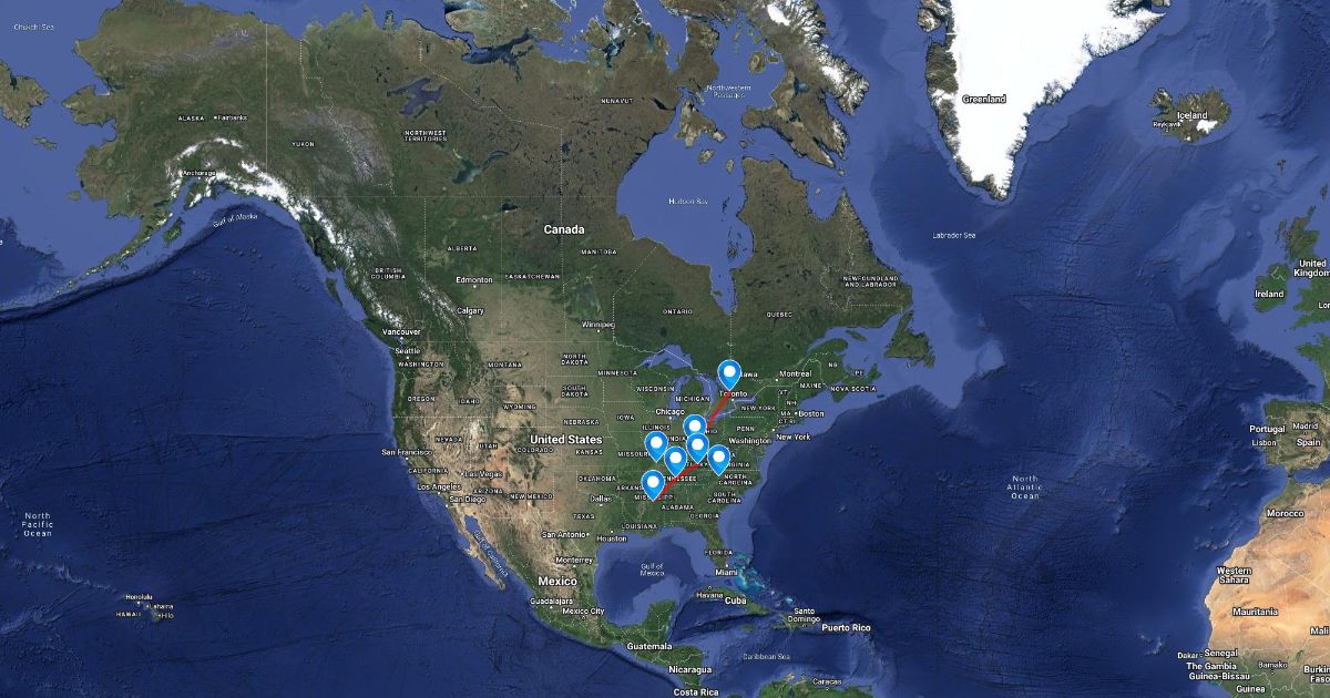 A map of all the underground railroad destinations.
