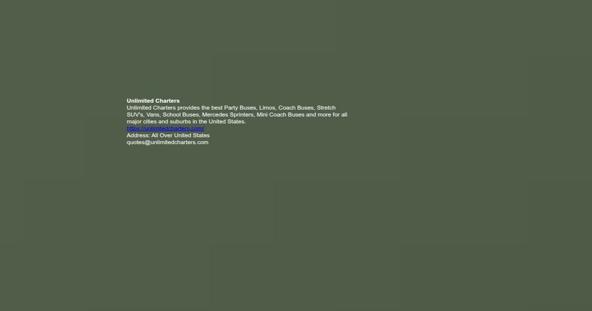 Unlimited Charters provides the best Party Buses, Limos, Coach Buses, Stretch SUV's, Vans, School Buses, Mercedes Sprinters, Mini Coach Buses and more for all major cities and suburbs in the United States.