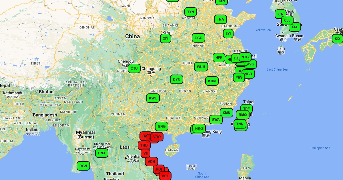 Vietjet Air domestic and international destinations