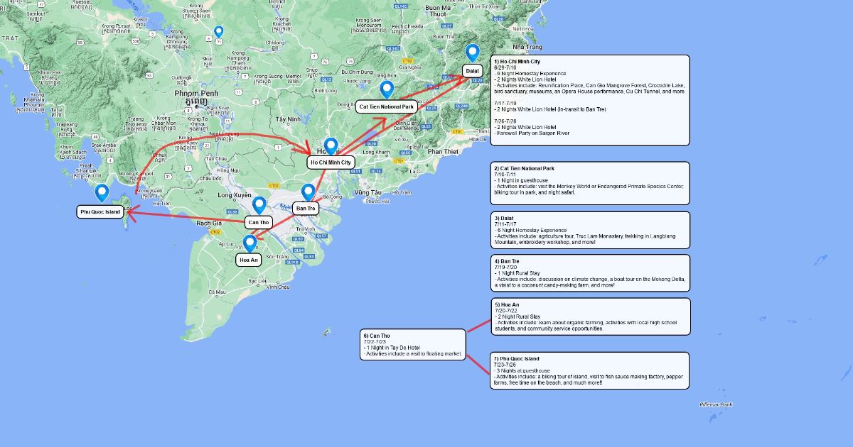 Destinations and activities for Experiment Trip