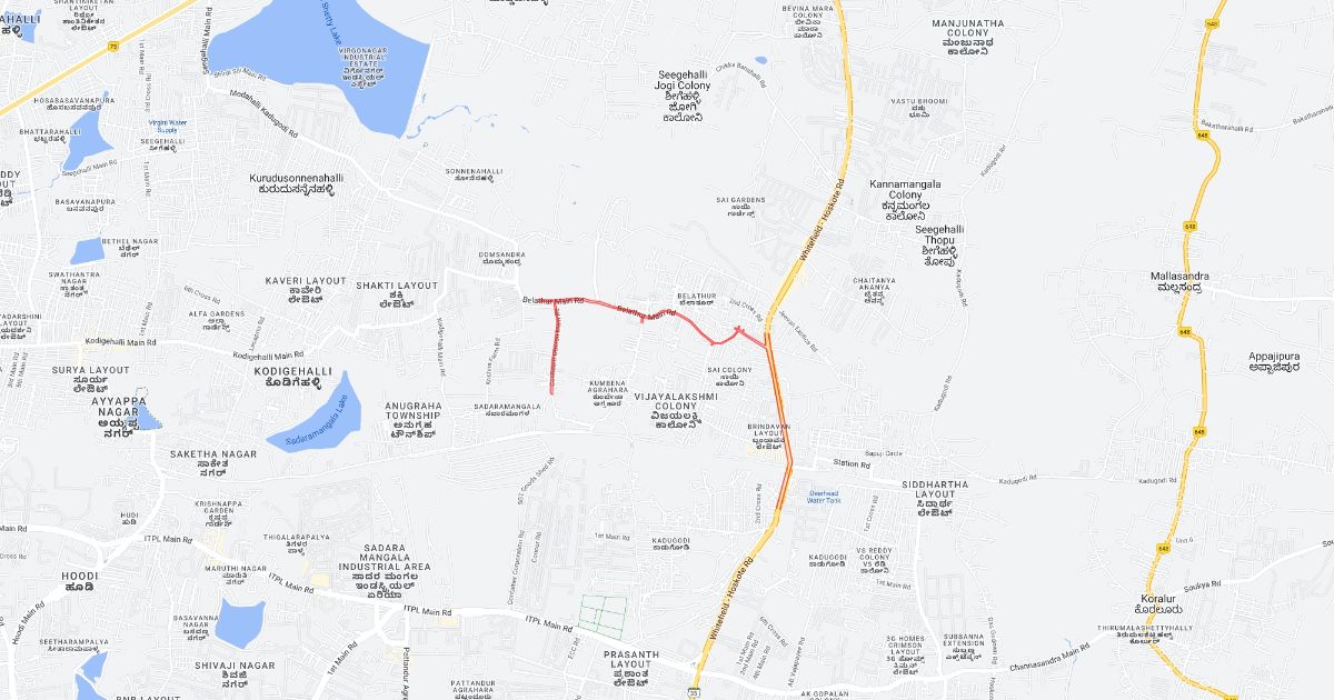 Kadugodi Bus Station to Vaastu Dew FLower Road Map