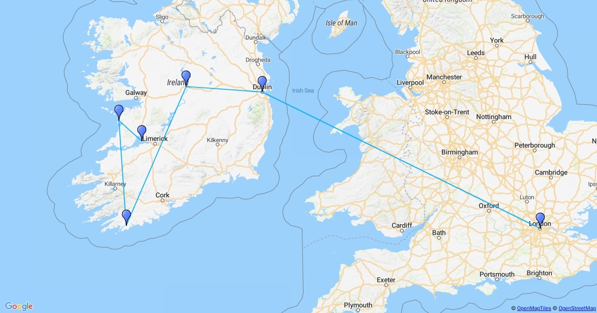 Map of London and Ireland