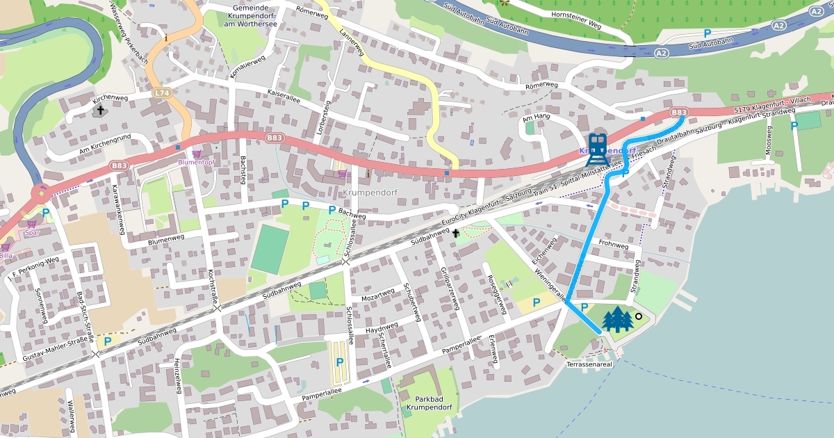 Weg von der Hauptstraße zur Waldarena