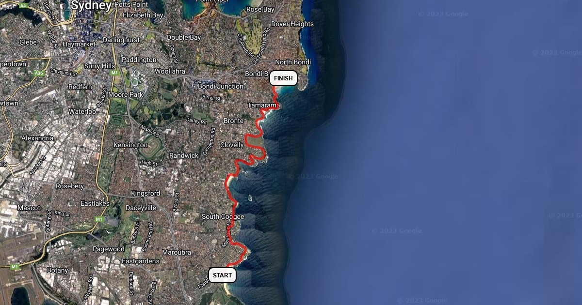 The route for Informa Australia's Walk the World; Maroubra - Bondi Beach