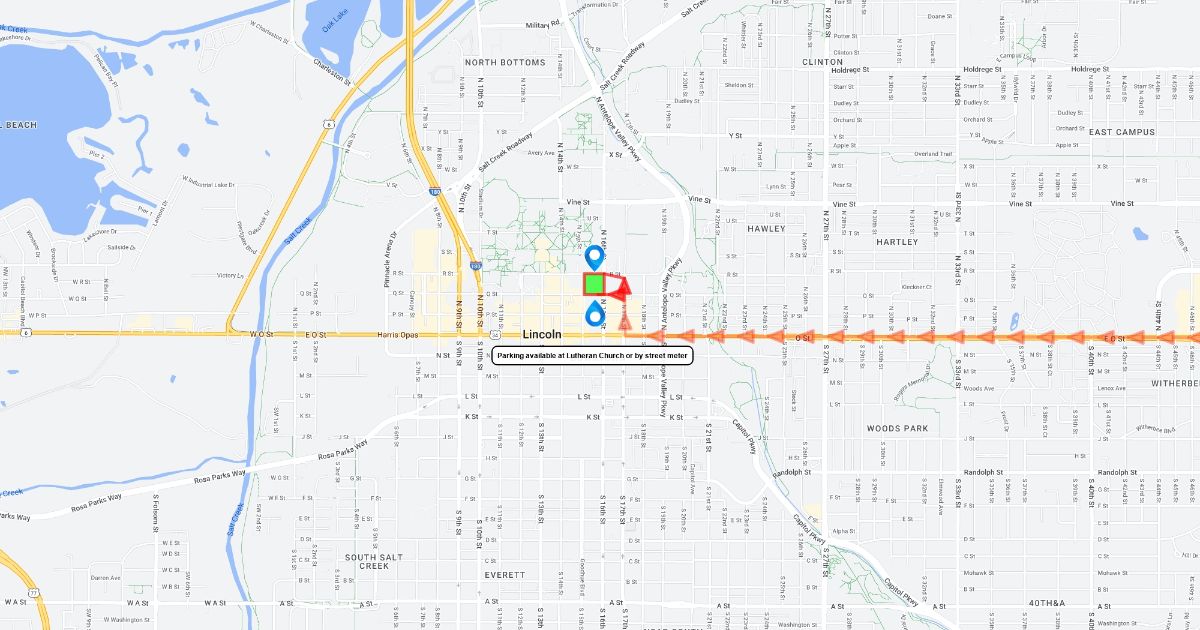 A map of directions from the church to the reception