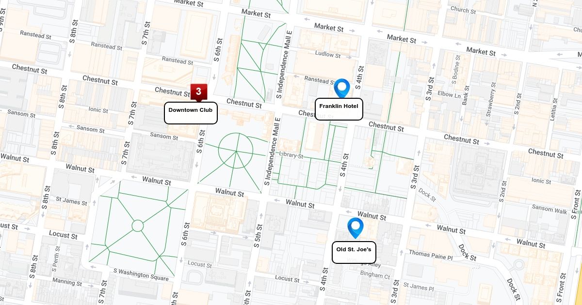 Map of key locations. Hotel, Church and Venue.