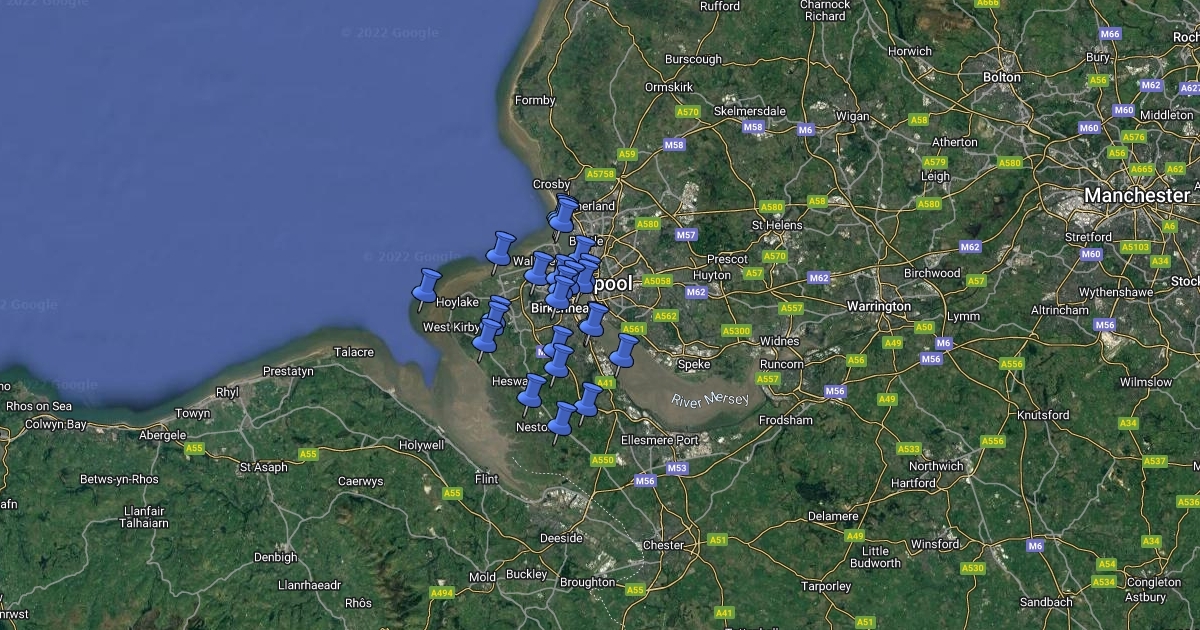 Places of interest on the Wirral Peninsula.