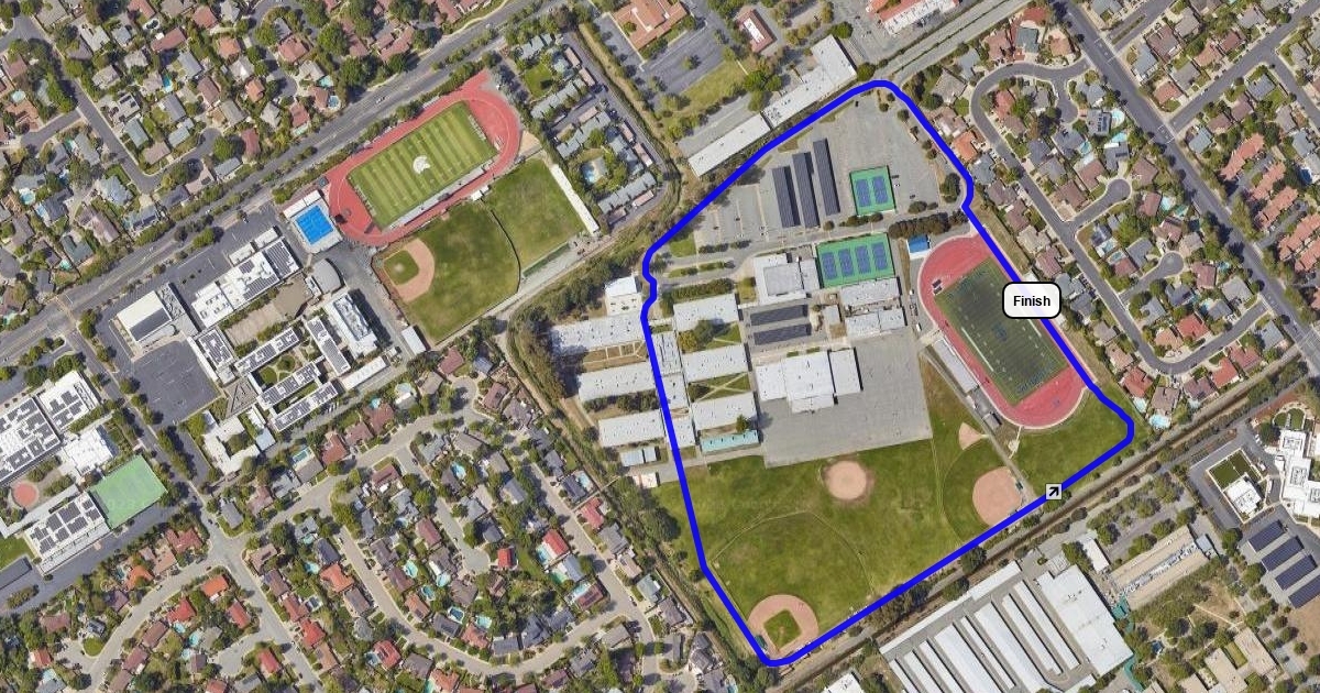 Continue on the field around the corner onto the track. Then another lap around school and finish on the track.