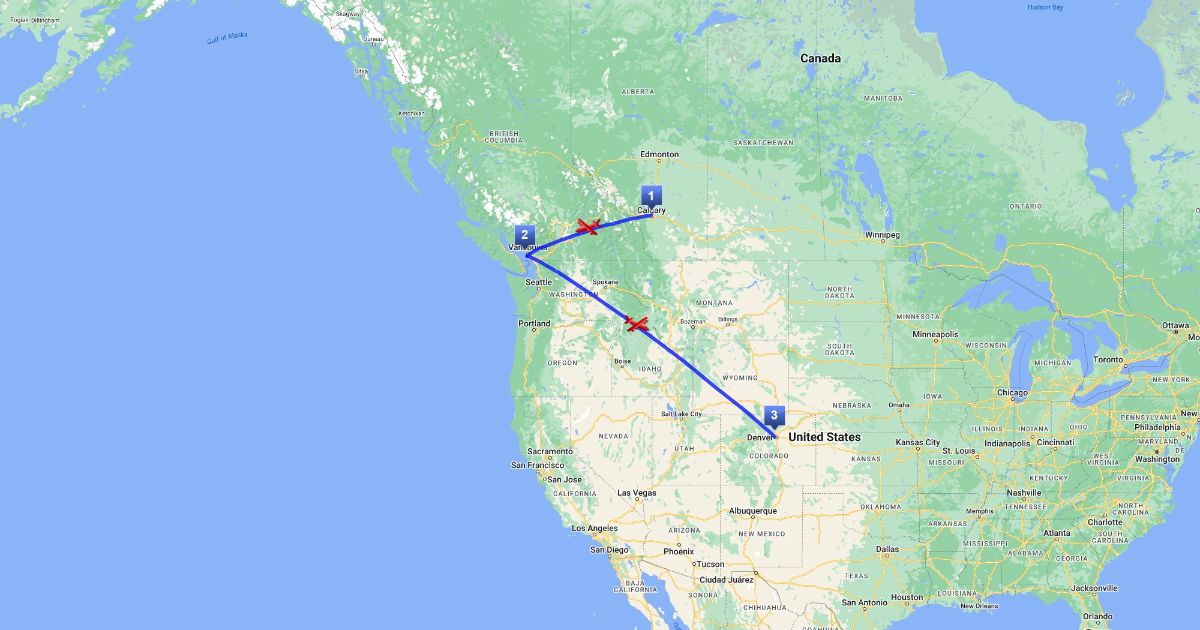 Calgary-Vancouver-Denver map