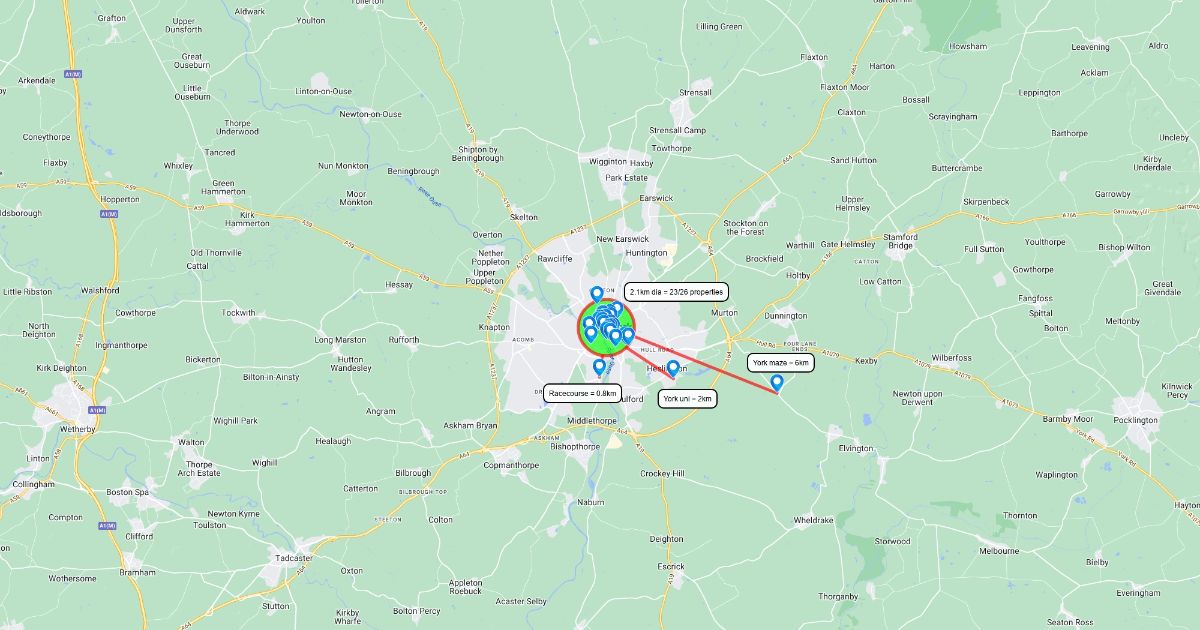 Locations of all properties on the York monopoly board