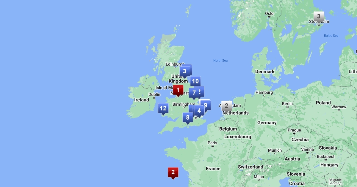 Places Eddie Yorke lived in or worked in, in the UK