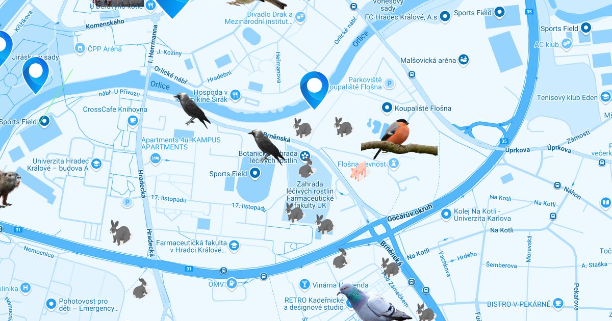 Místa setkáni s ptáky a savci Hradce Králové