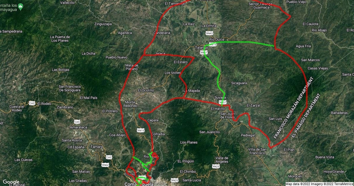 una mapa de la zona torocagua. mision honduras comayaguela