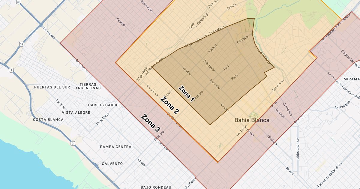 Zona 1: gratis Zona 2: 1500 Zona 3: 2500