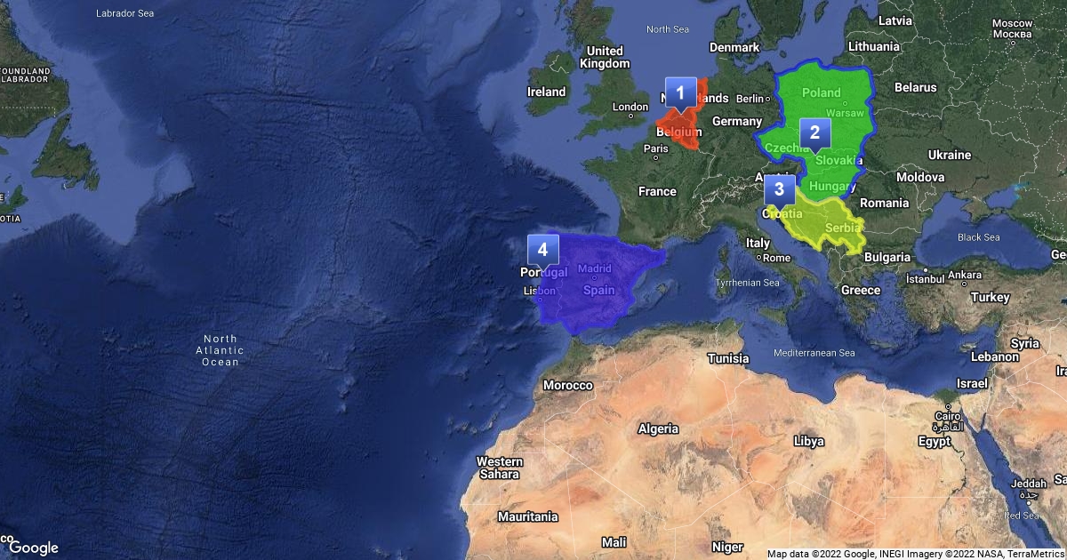 Countries of territory identified and coloured