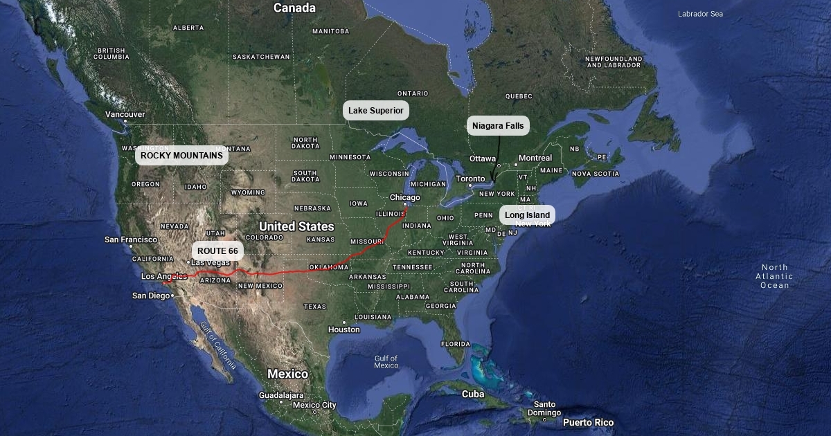 5 states 5 biggest cities in the US Rocky Mountains Niagara Falls Route 66 Lake Superior Long Island