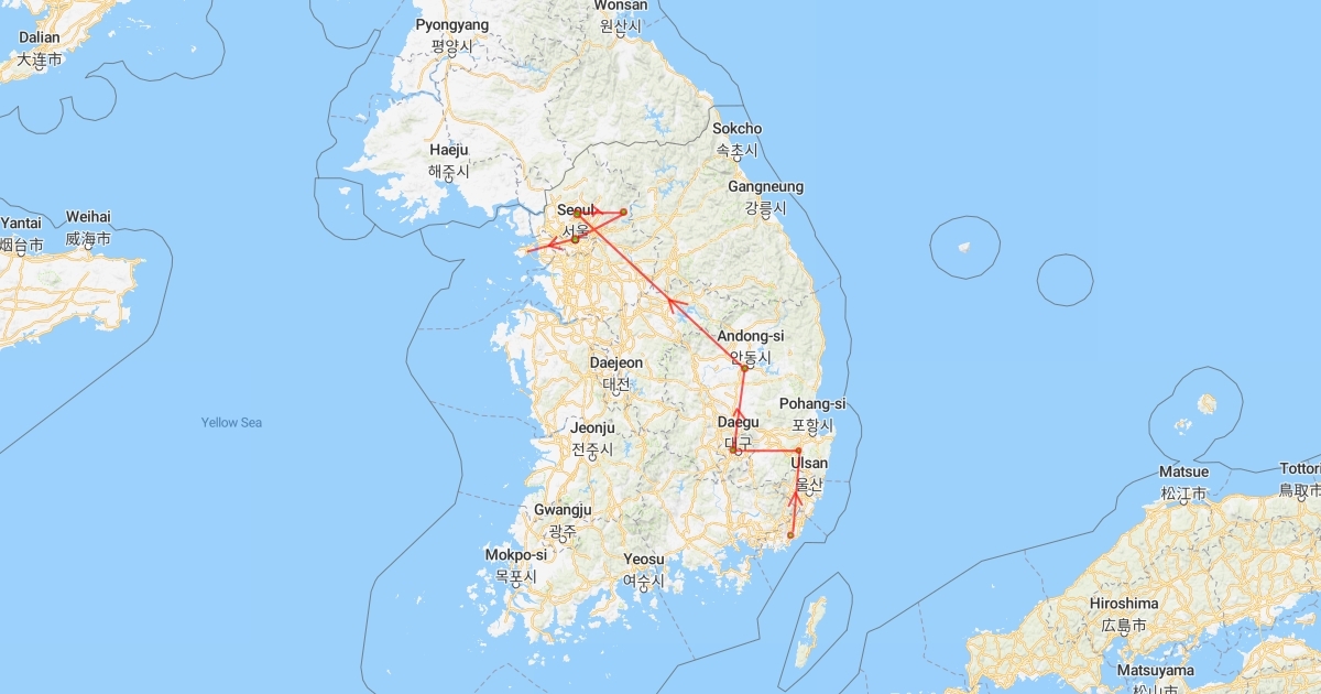 busan gyeongju daegu andong pocheon nami seoul