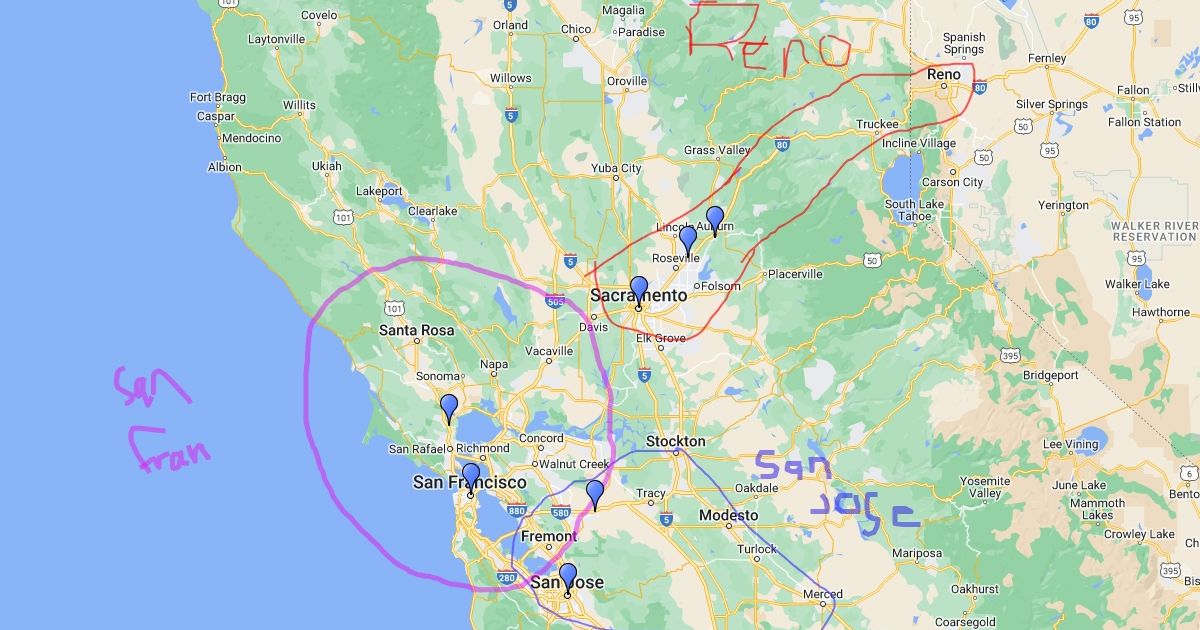 san fran. san jose and sac map
