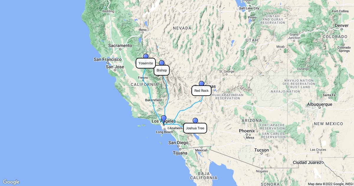 visual reference for major climbing areas near los angeles