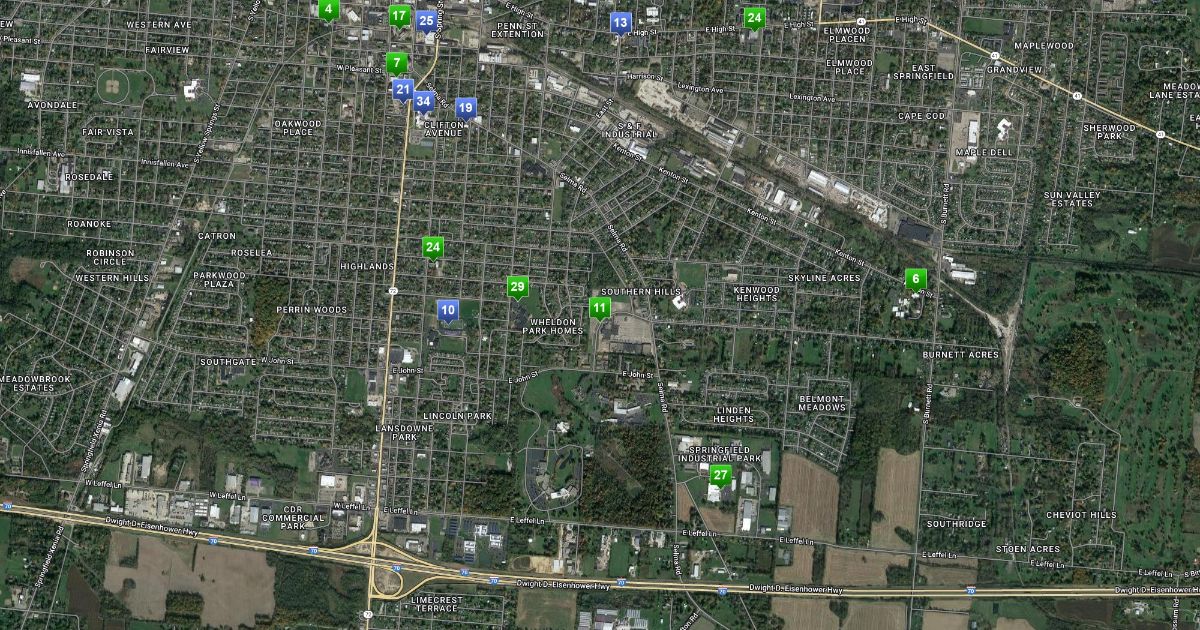 This map lists all of the Wittenberg service sites for the fall 2018 semester