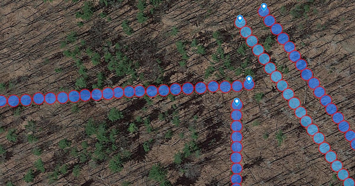 8 sets of circles to survey deer nibbles and droppings