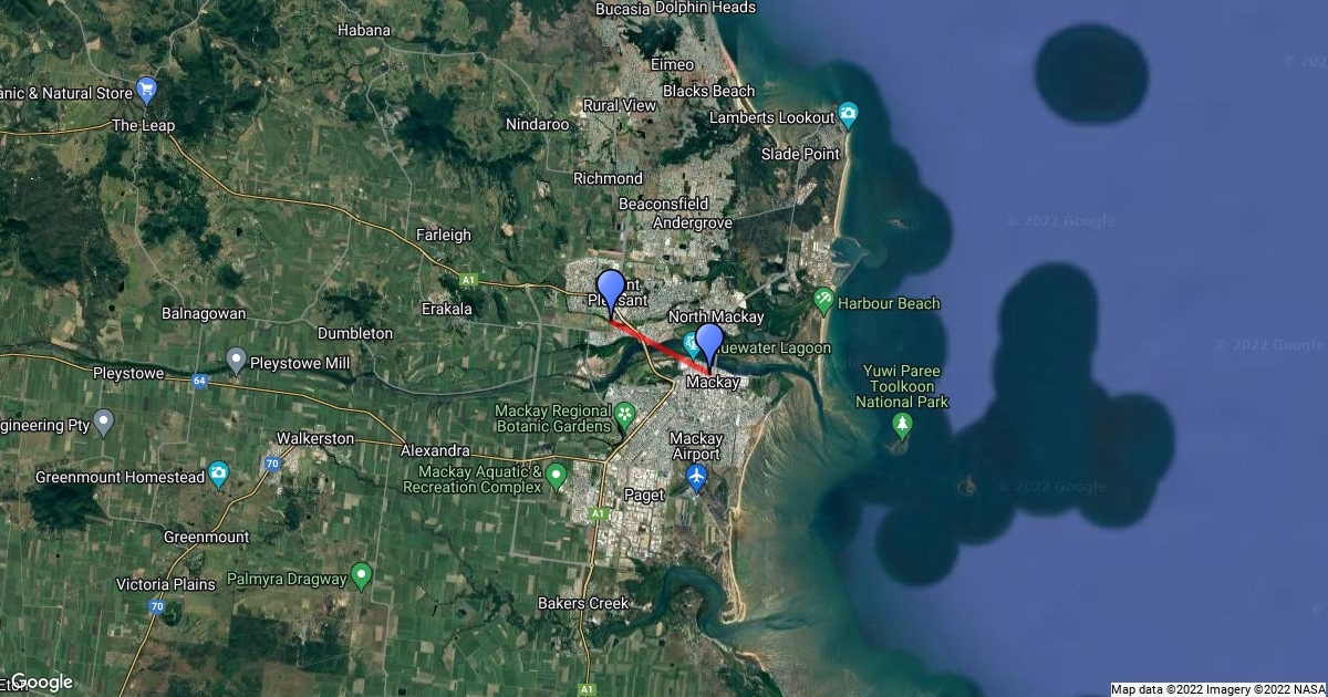 distance from janes creek and Mackay CBD
