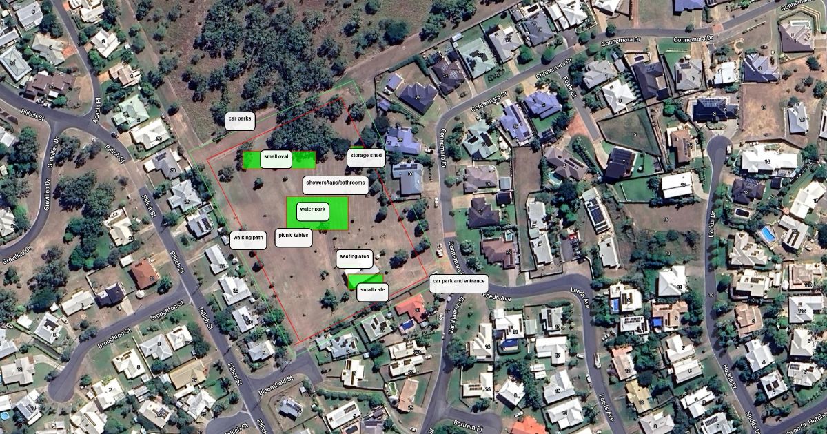 water park, small café and small oval