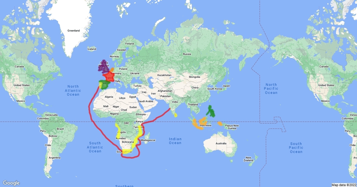 orange is dutch purple is English red is french yellow is Portuguese green is Spanish