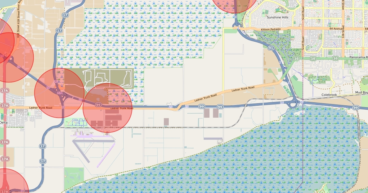each exit has a red 1km convenience circle. it is where it is convenient to get on a freeway.
