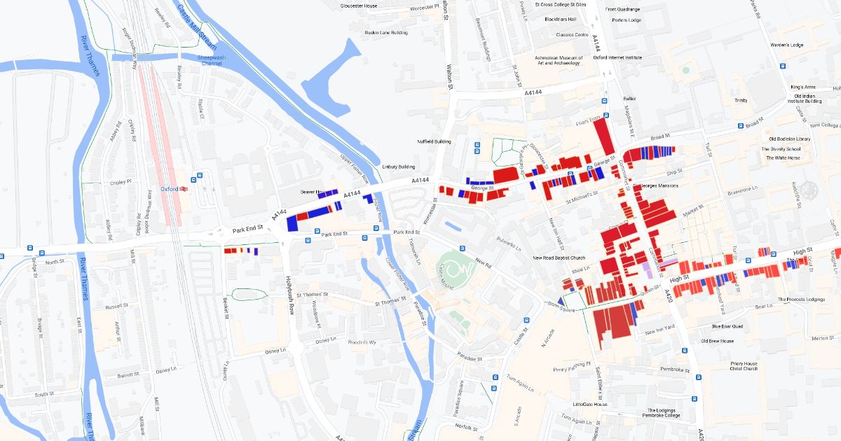 colour based on different streets looking at