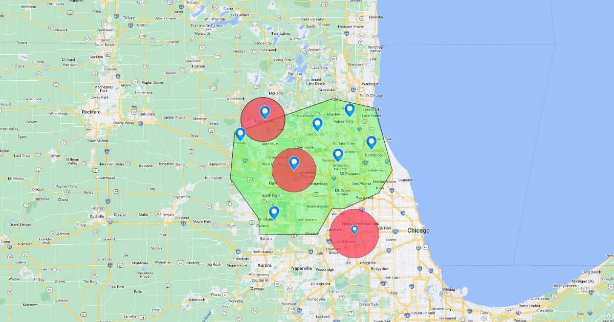 existing locations, restrictions, and search area.