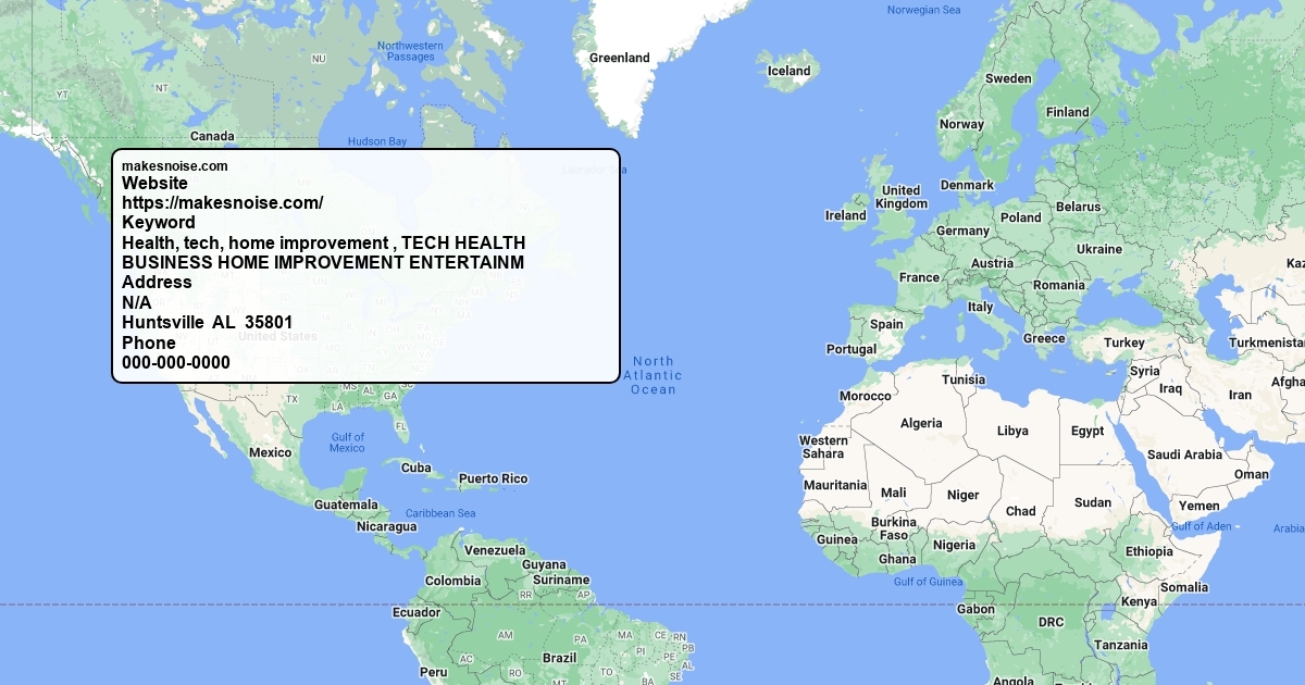 Website https://makesnoise.com/ Keyword Health, tech, home improvement , TECH HEALTH BUSINESS HOME IMPROVEMENT ENTERTAINM Address N/A Huntsville AL 35801 Phone 000-000-0000