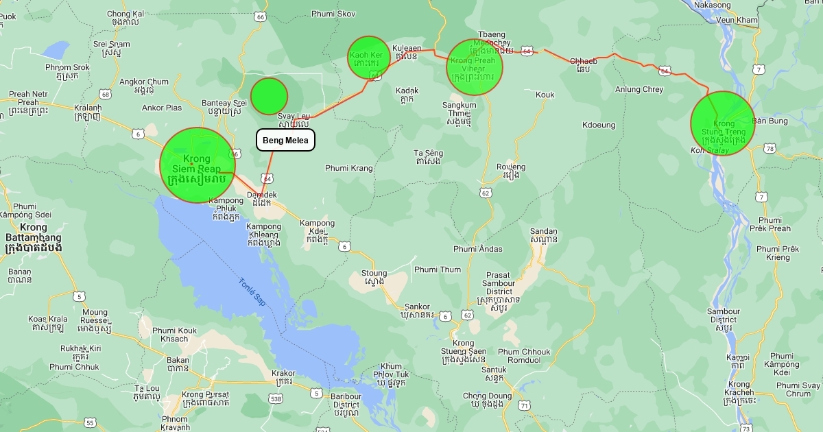 map from Siem Reap to Steung Treng
