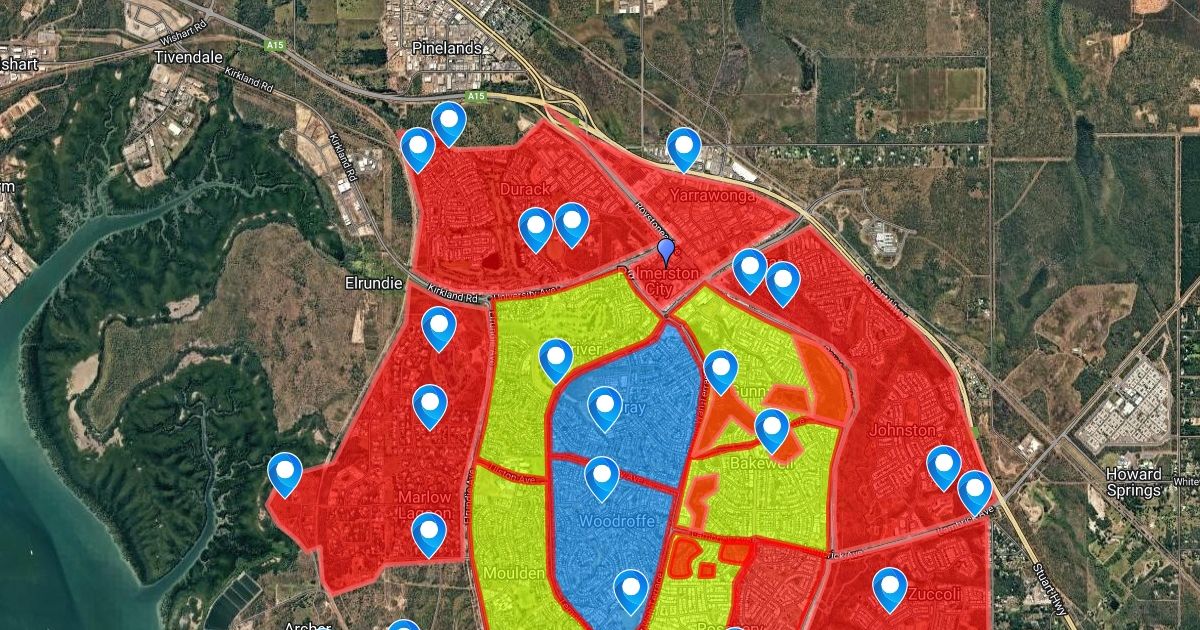 map of Palmerston with fire danger ratings and assets that need protection