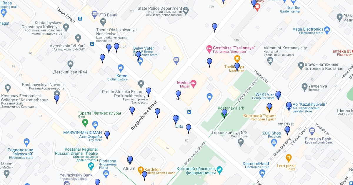 карта - гостиница "Медеу" и кафе, рестораны, аптеки, магазины поблизости