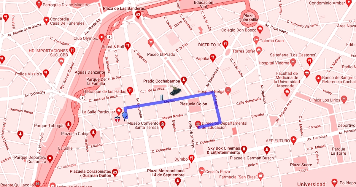 ruta del colegio La Salle hacía SEDUCA