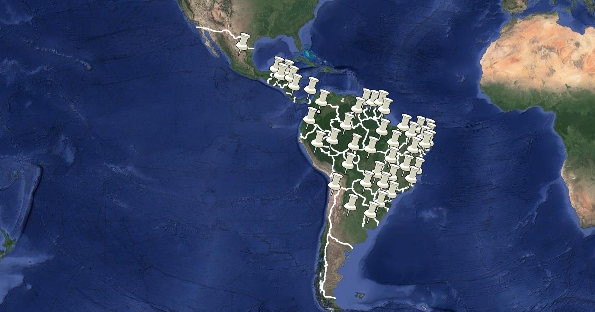 mapa, delineado con sus paises y capitales