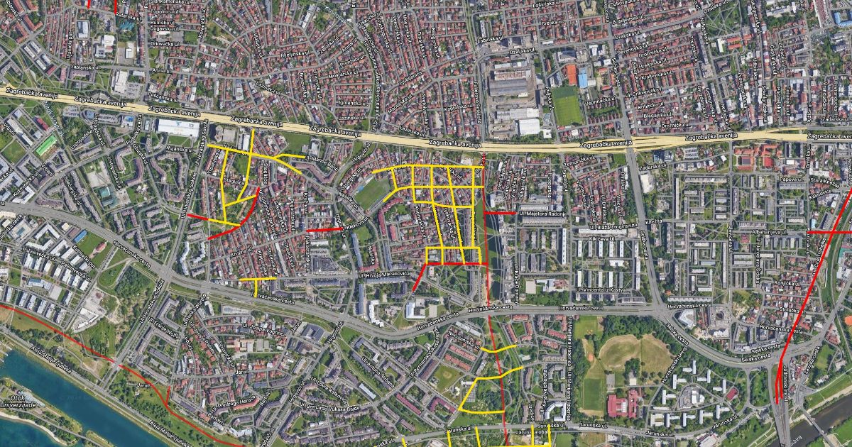 mapa nedovrsenih cesta