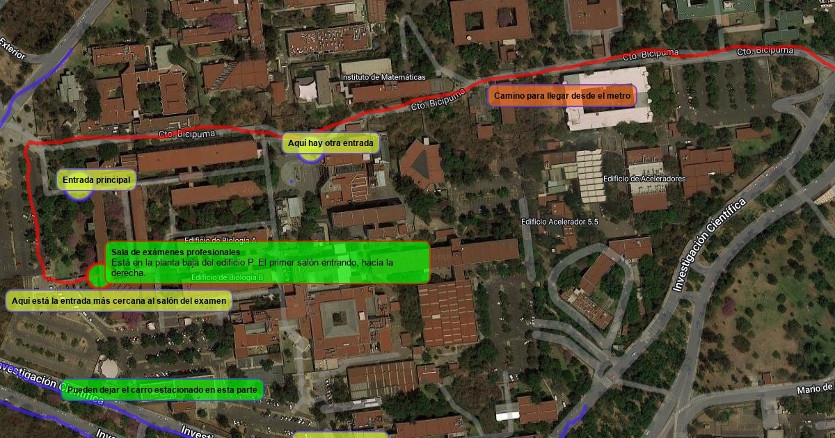 Instrucciones y marcas para llegar al salón del examen profesional