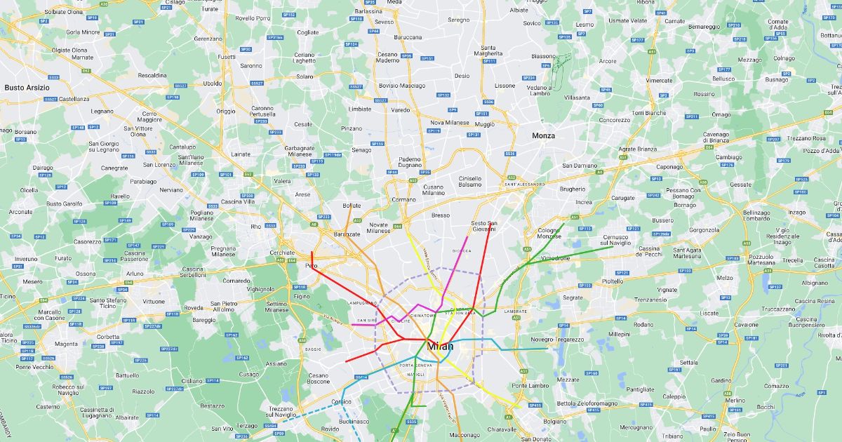 milano metro map 7 lines